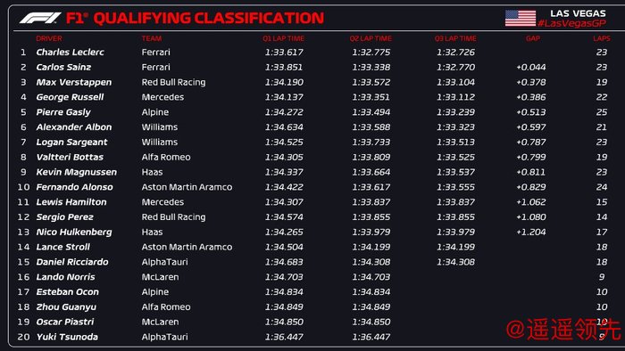 2023F1拉斯维加斯大奖赛排位赛成绩: